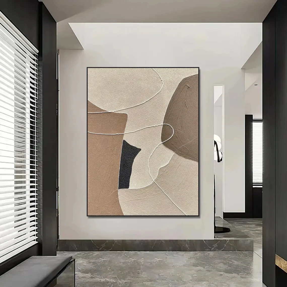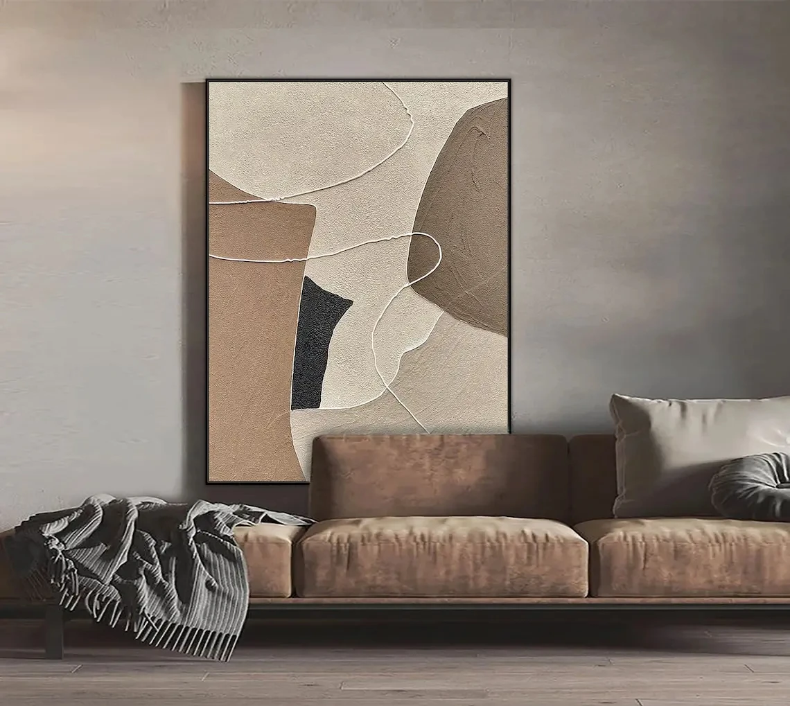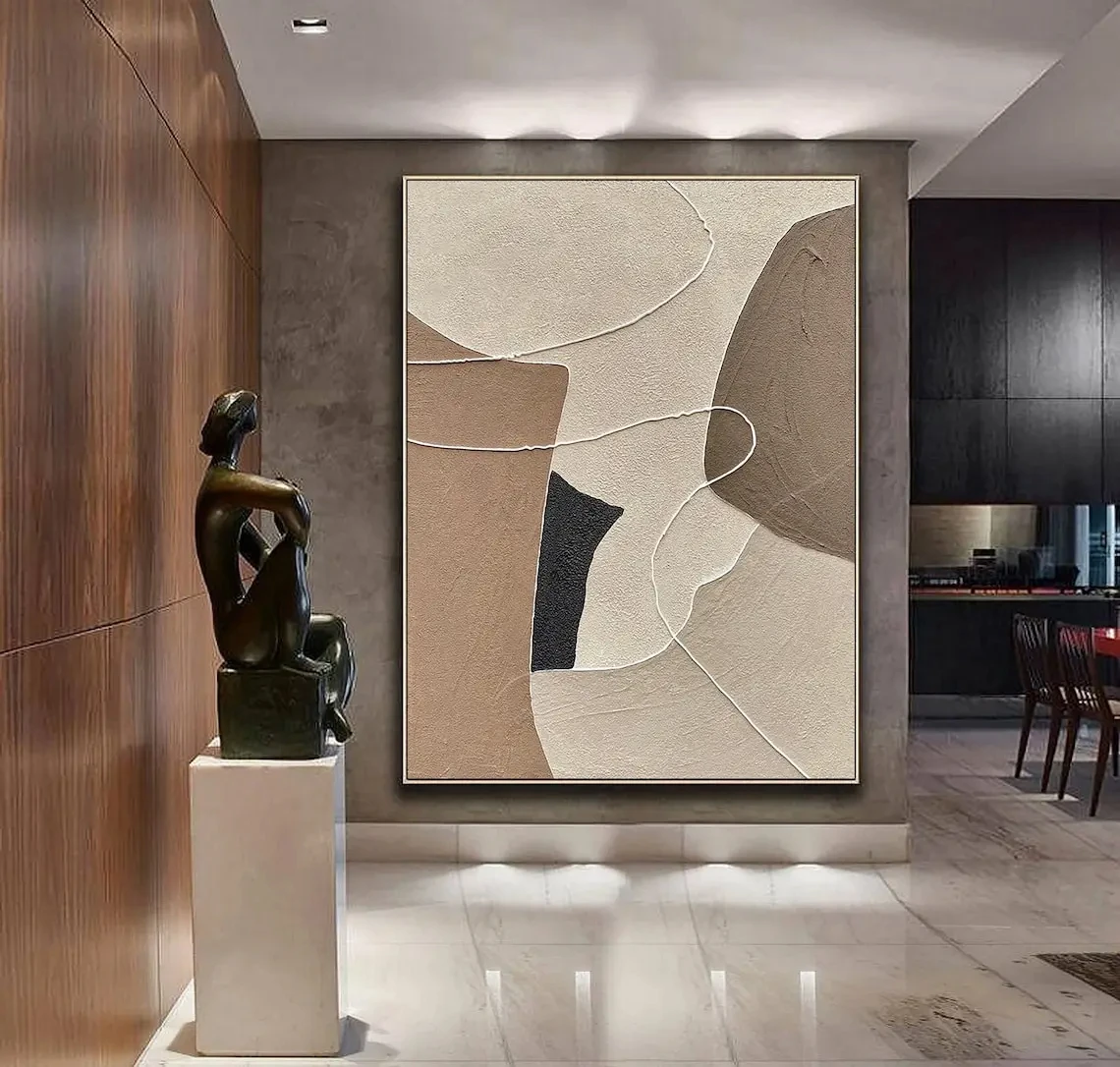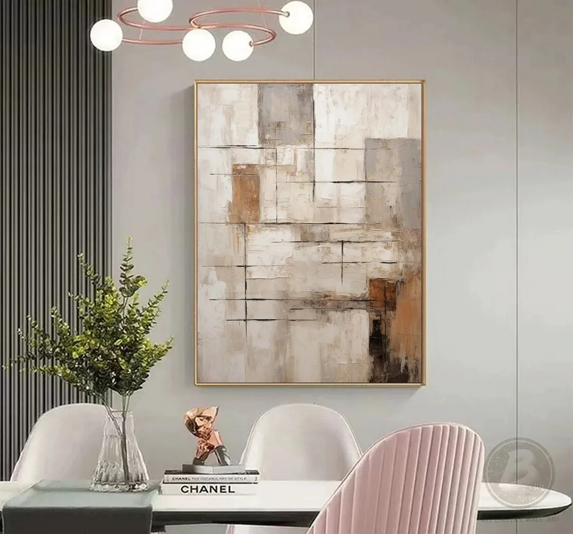Beige, Brown, Abstract Oil Painting on Canvas